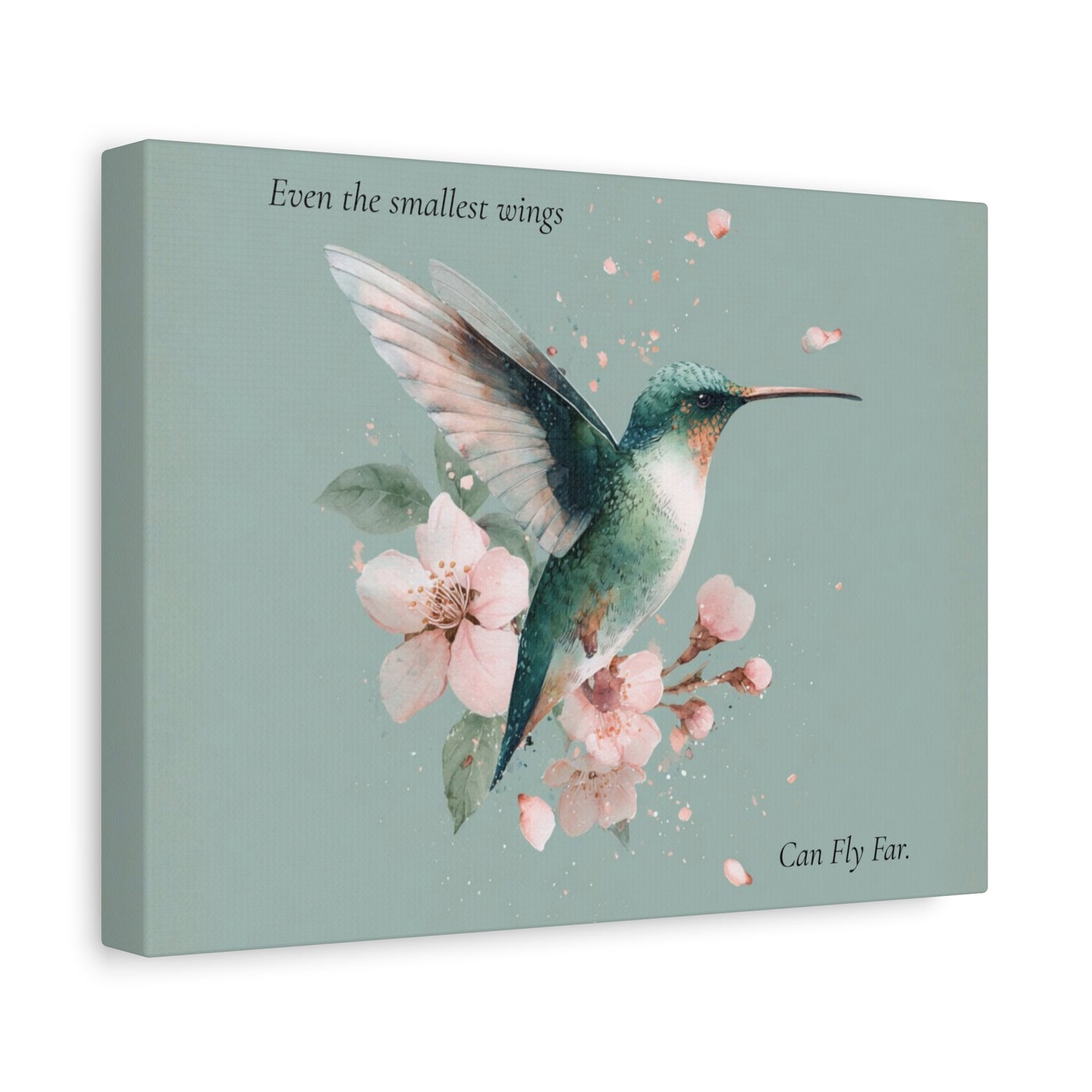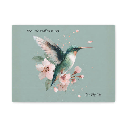 Hummingbird Floral Canvas Wall Art — "Even the Smallest Wings Can Fly Far" Matte Stretched Print