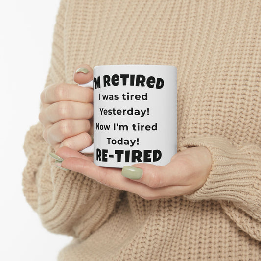 Funny Retirement Coffee Mug – I’m Retired! I Was Tired Yesterday, Now I’m Tired Today, RE-TIRED – Retirement Gift for Coworker, Boss, Mom, Dad (11oz & 15oz)
