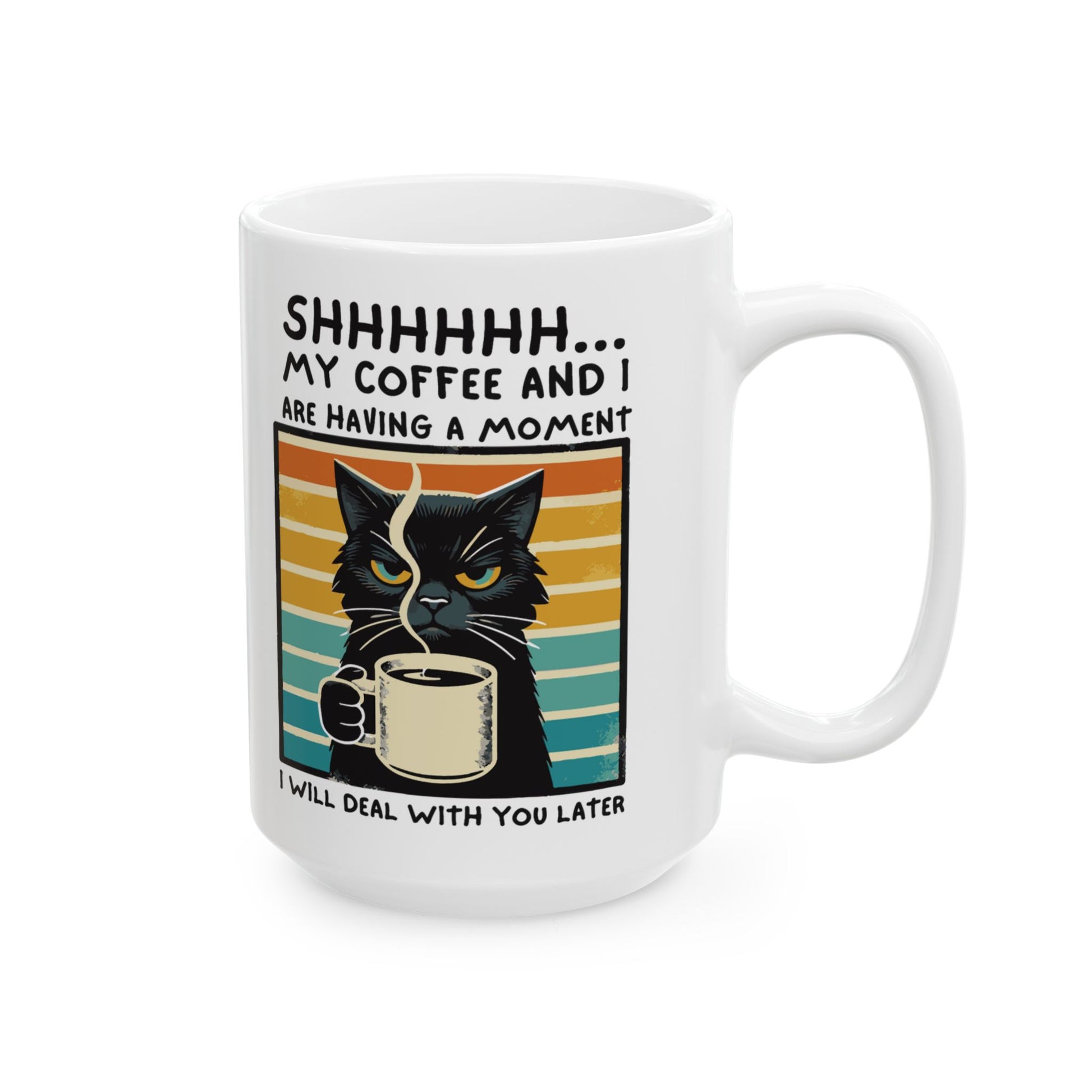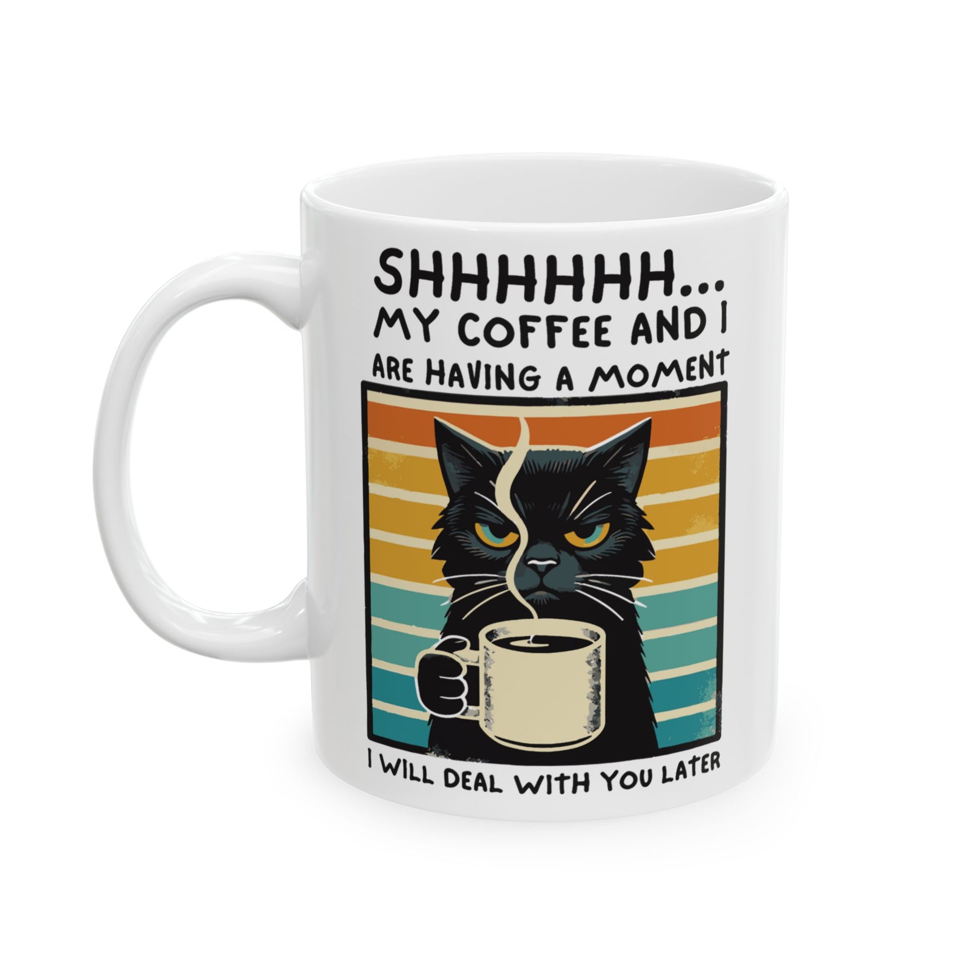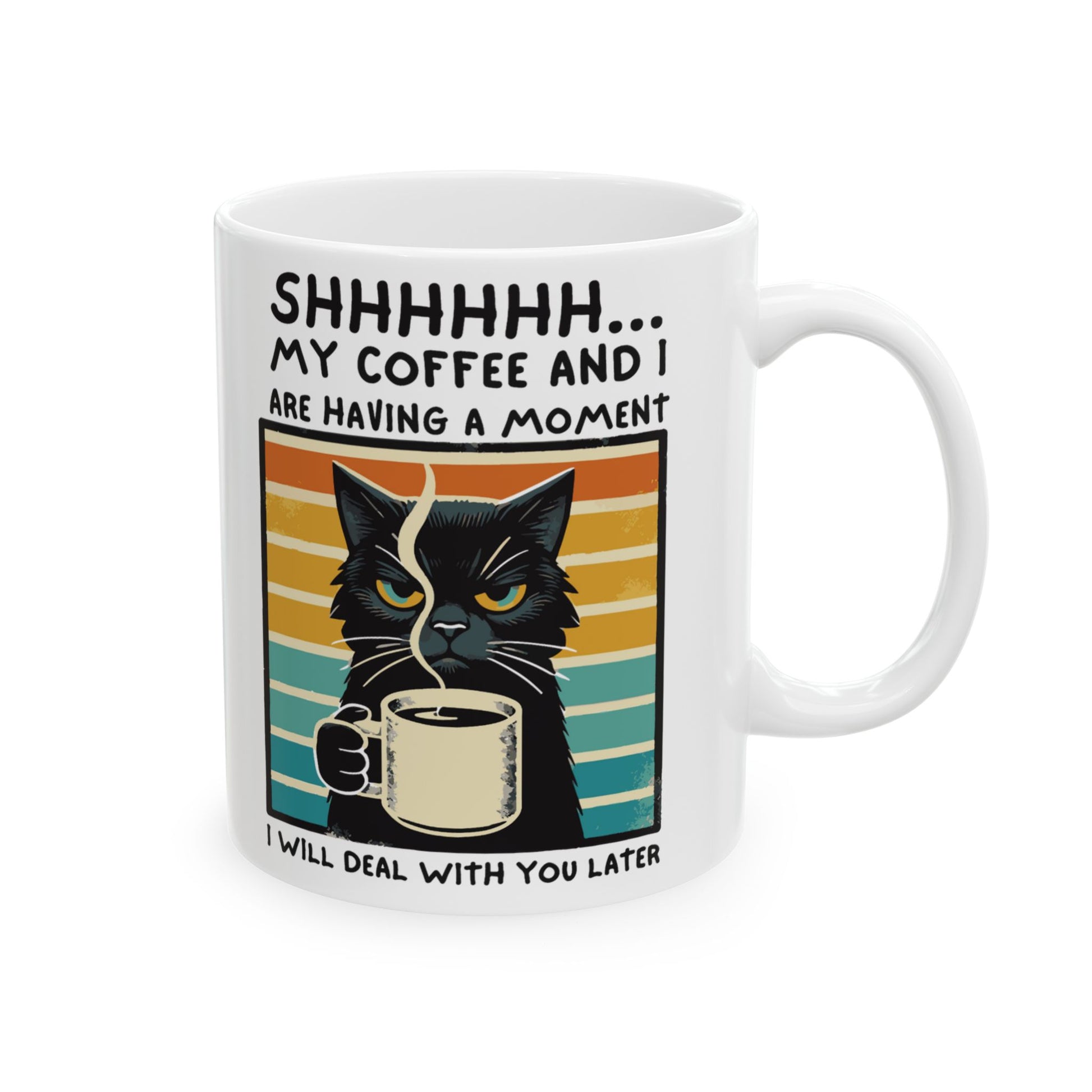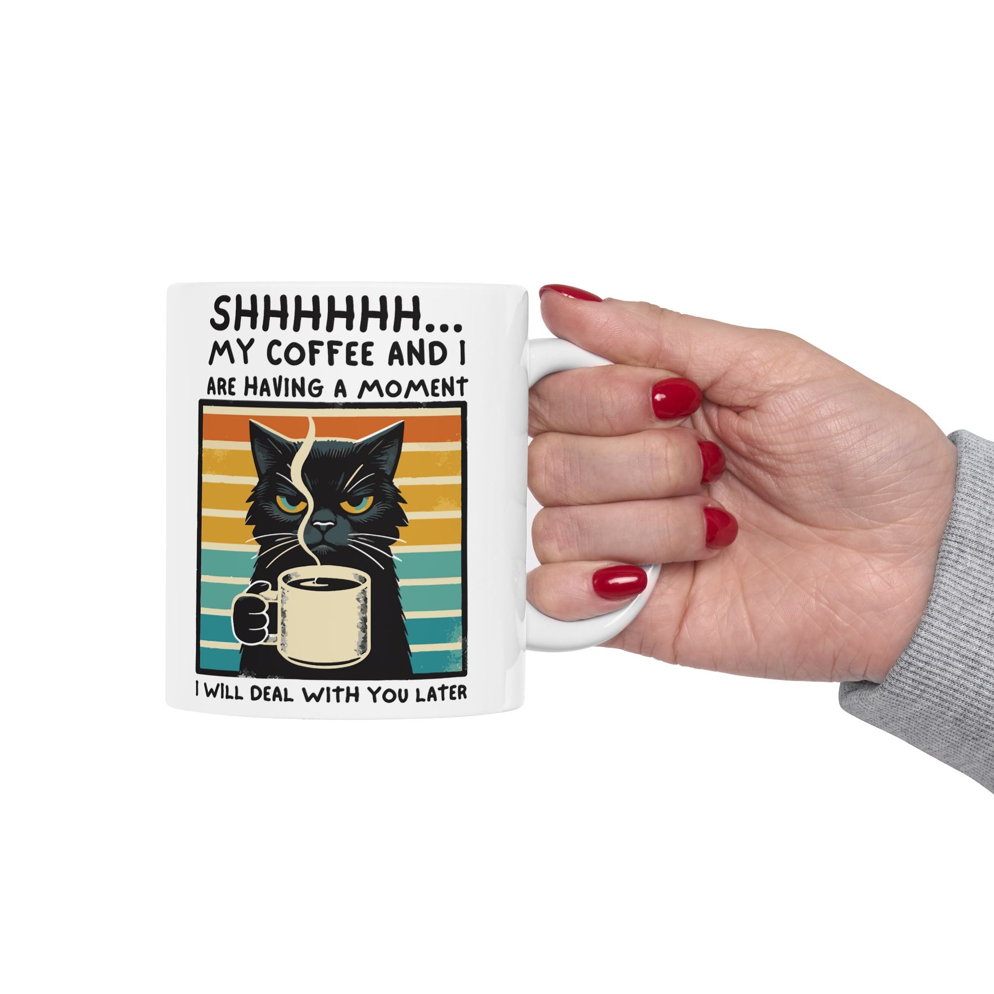 😾 " Cat Coffee Mug – Funny Black Cat 'Shhh... Me & My Coffee' Cup (11oz & 15oz)"