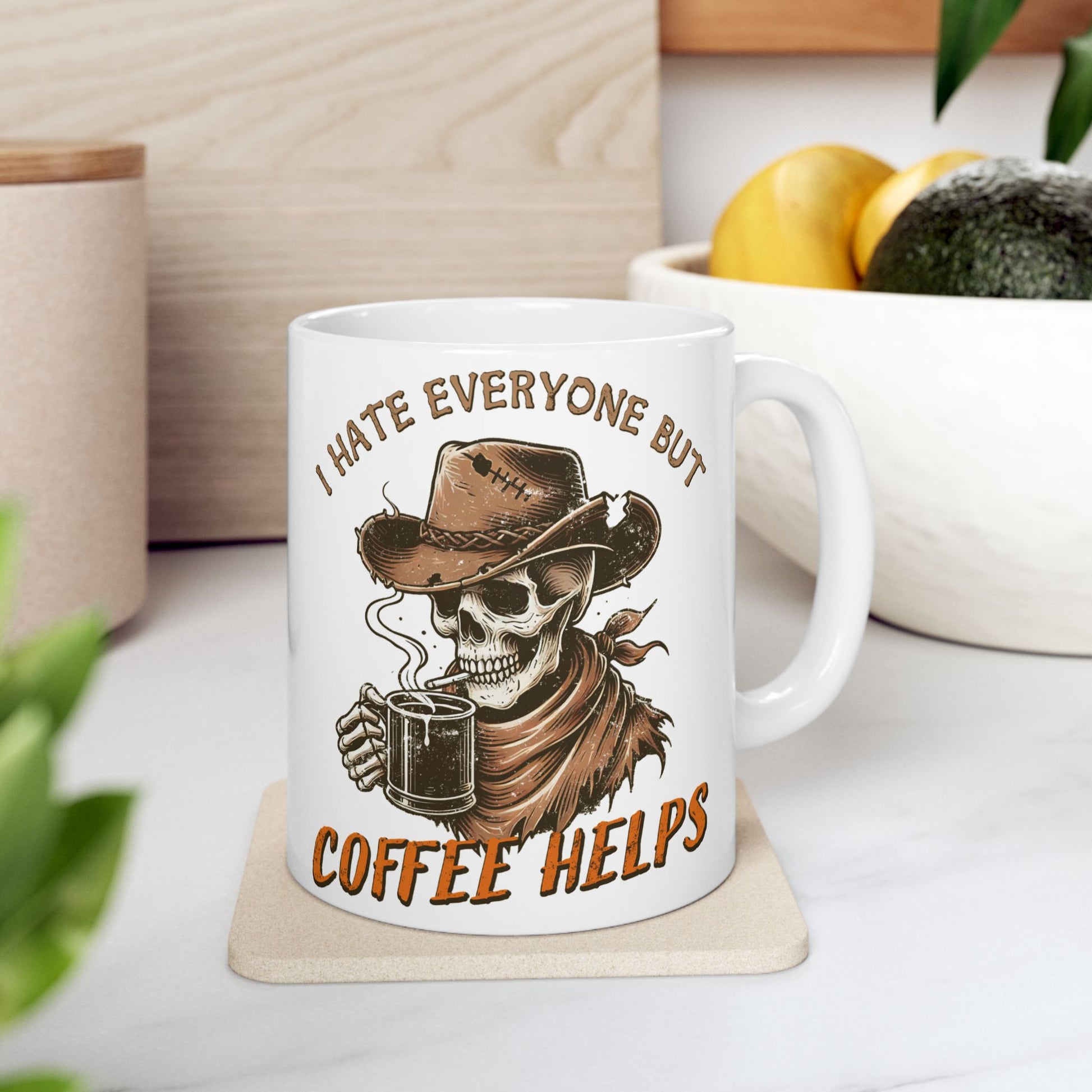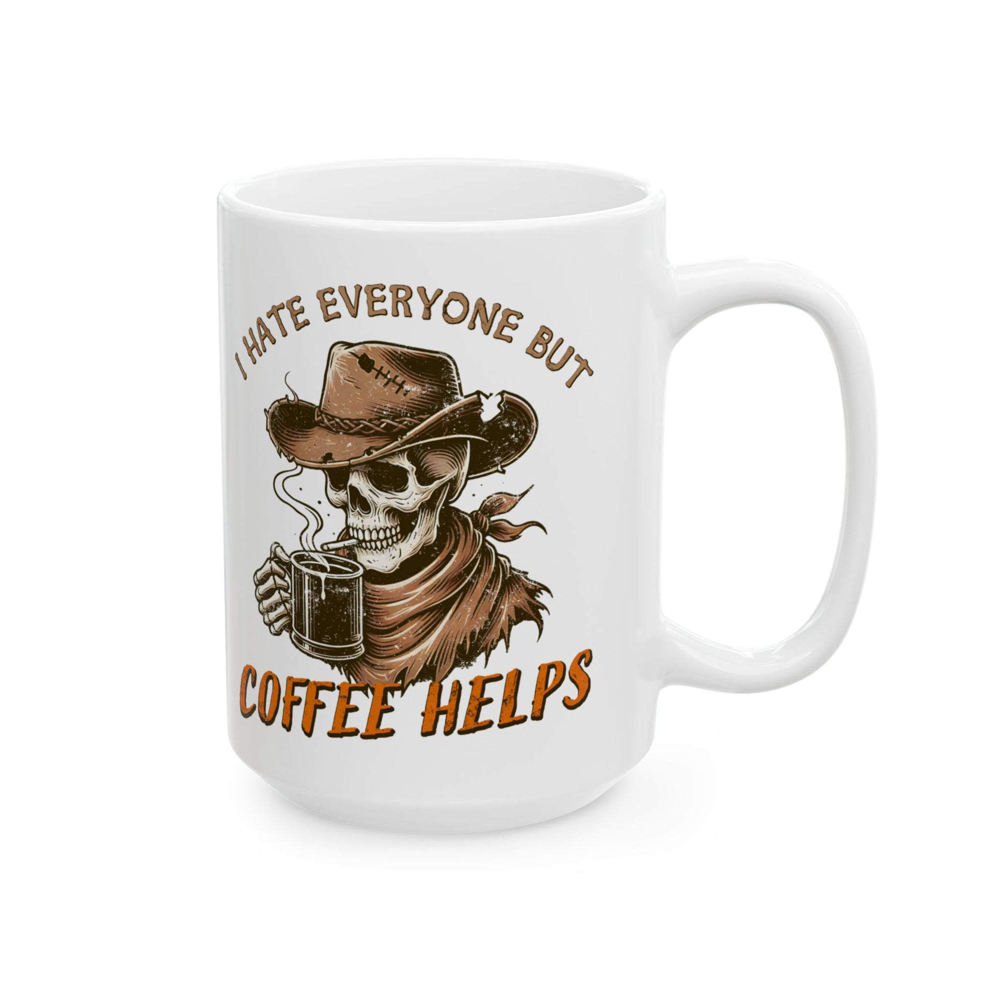 š¤ "Cowboy Skeleton Coffee Mug ā āI Hate Everyone But Coffee Helpsā Funny Western Cup (11oz & 15oz)"