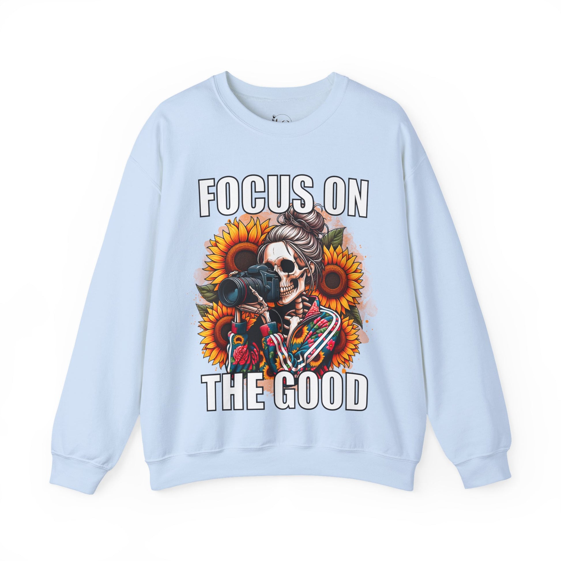 Spread positivity and stay cozy with our “Focus on the Good” Unisex Crewneck Sweatshirt.