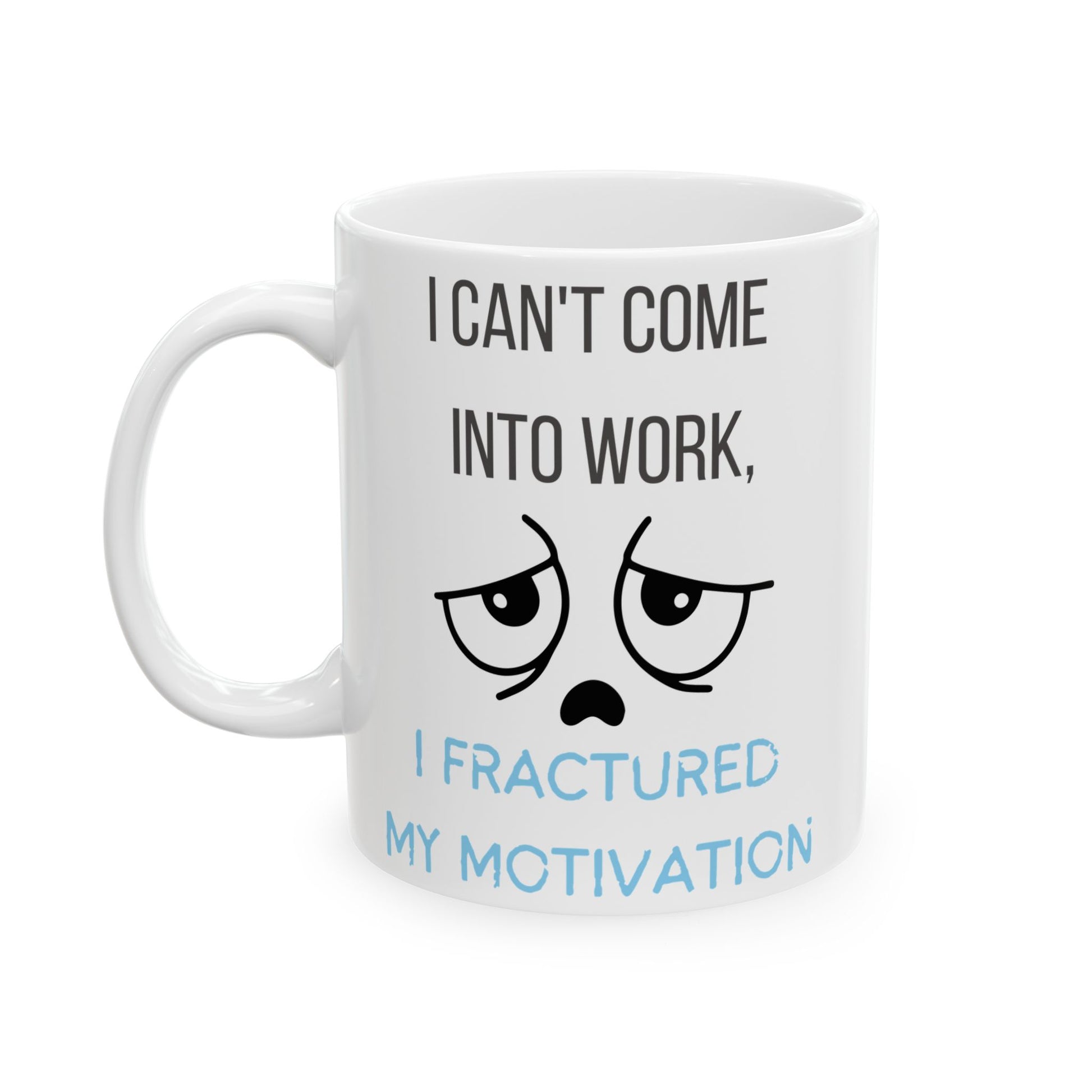 Mug - Funny 'I can't come into work, I fractured my motivation' Design for Office Workers